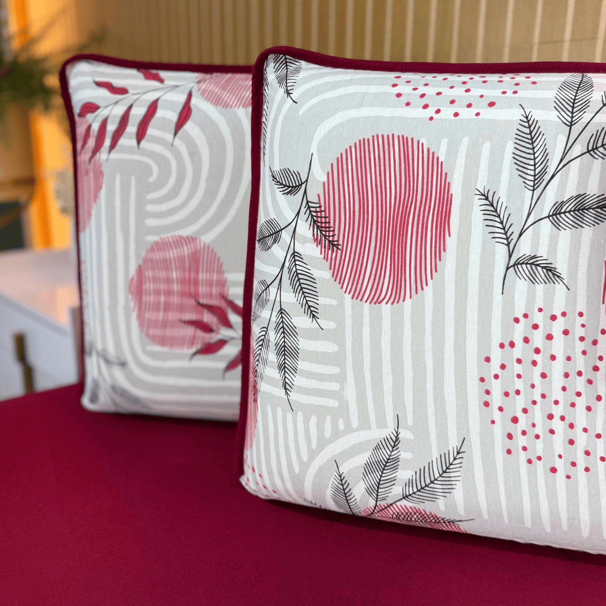 Jogo de Lençol em Malha 100% Algodão Abstrata Grená